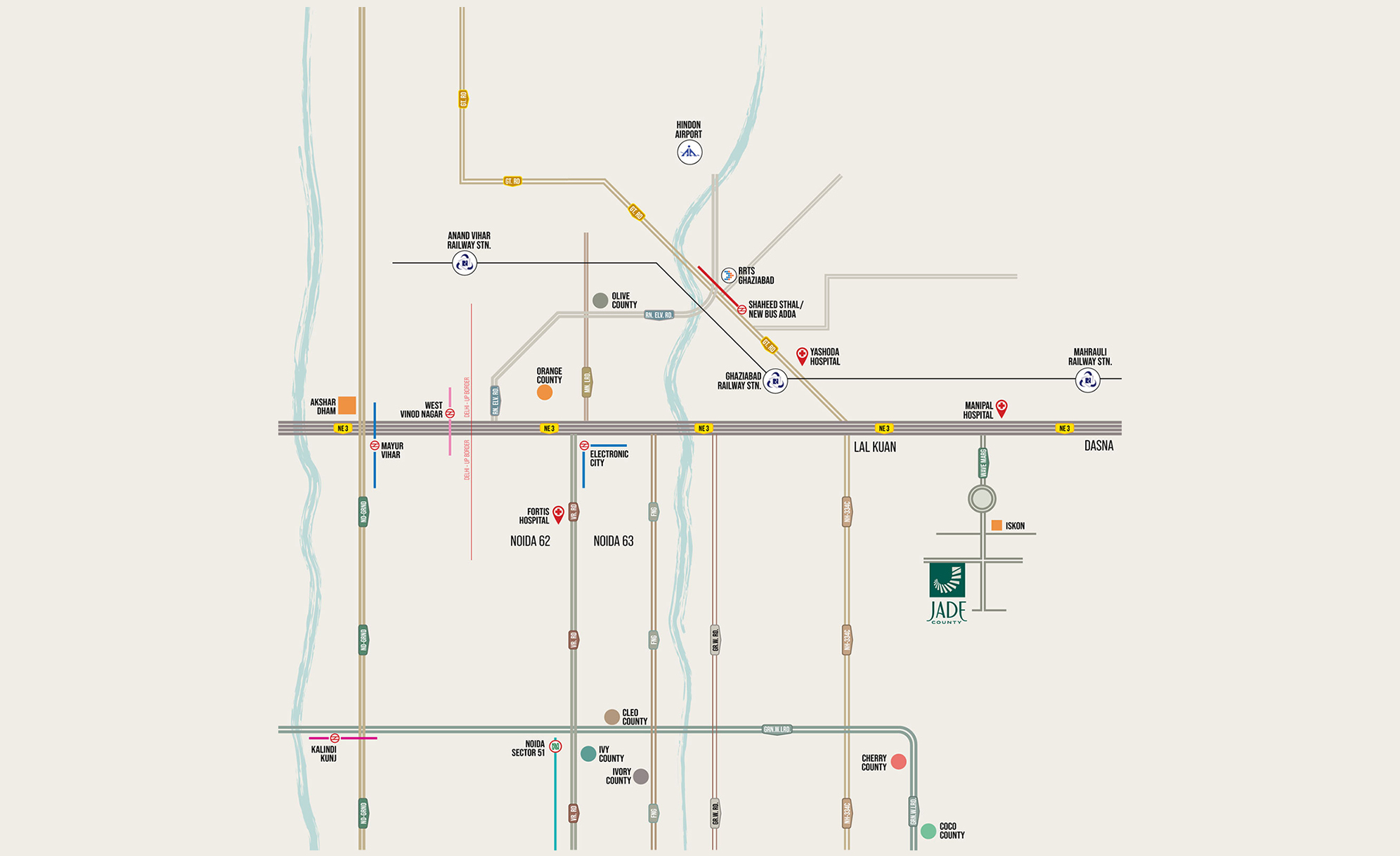 Welcome to Jade County, the crown jewel of Wave City, where ultra-luxury meets innovation, and urban living is redefined. Situated on the thriving corridor of NH-24, Ghaziabad, Jade County presents a premium lifestyle offering with exquisitely designed 3, 4 & 5 BHK high-rise apartments that blend opulence, modernity, and sustainability . Jade County isn’t just about owning a home—it’s about experiencing a lifestyle that resonates with sophistication. Each 3,4 & 5 BHK apartment is a masterpiece of architectural finesse, featuring spacious layouts, large windows for abundant natural light, smart space utilization, and high-end finishes that exude class.